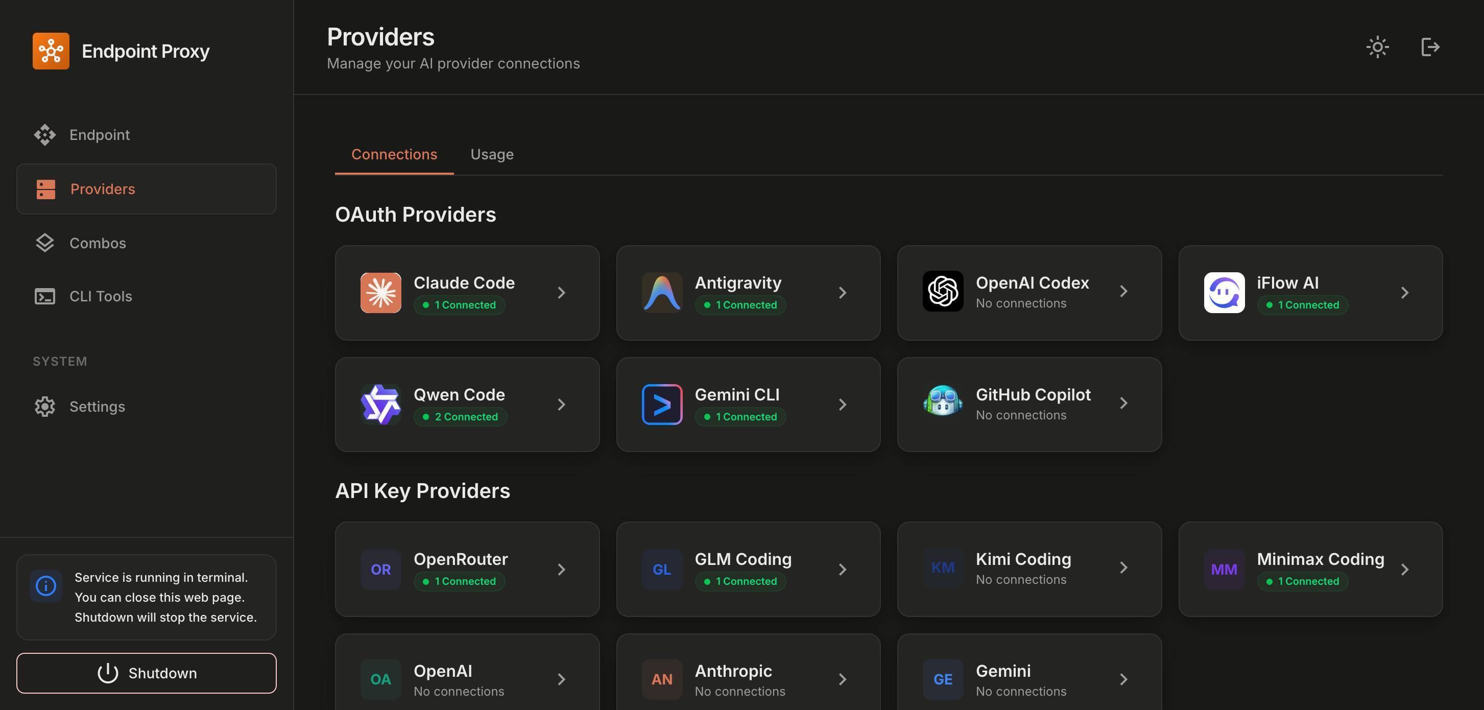 Sau khi chạy, bảng điều khiển sẽ mở tại: http://localhost:20128.
