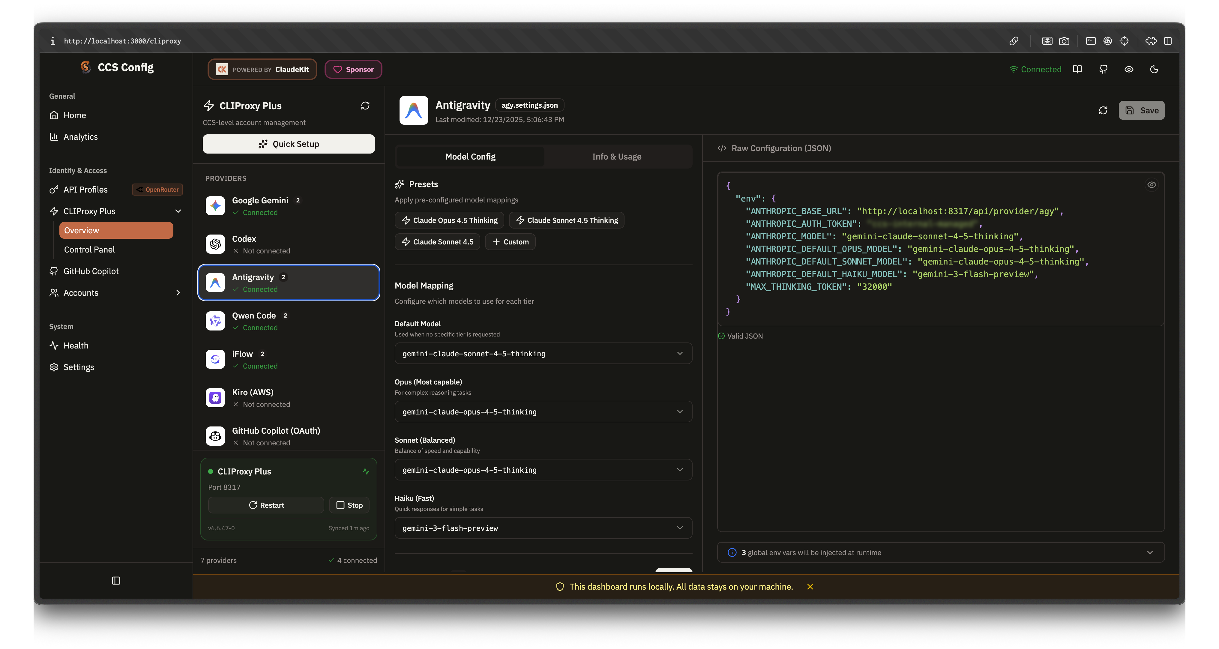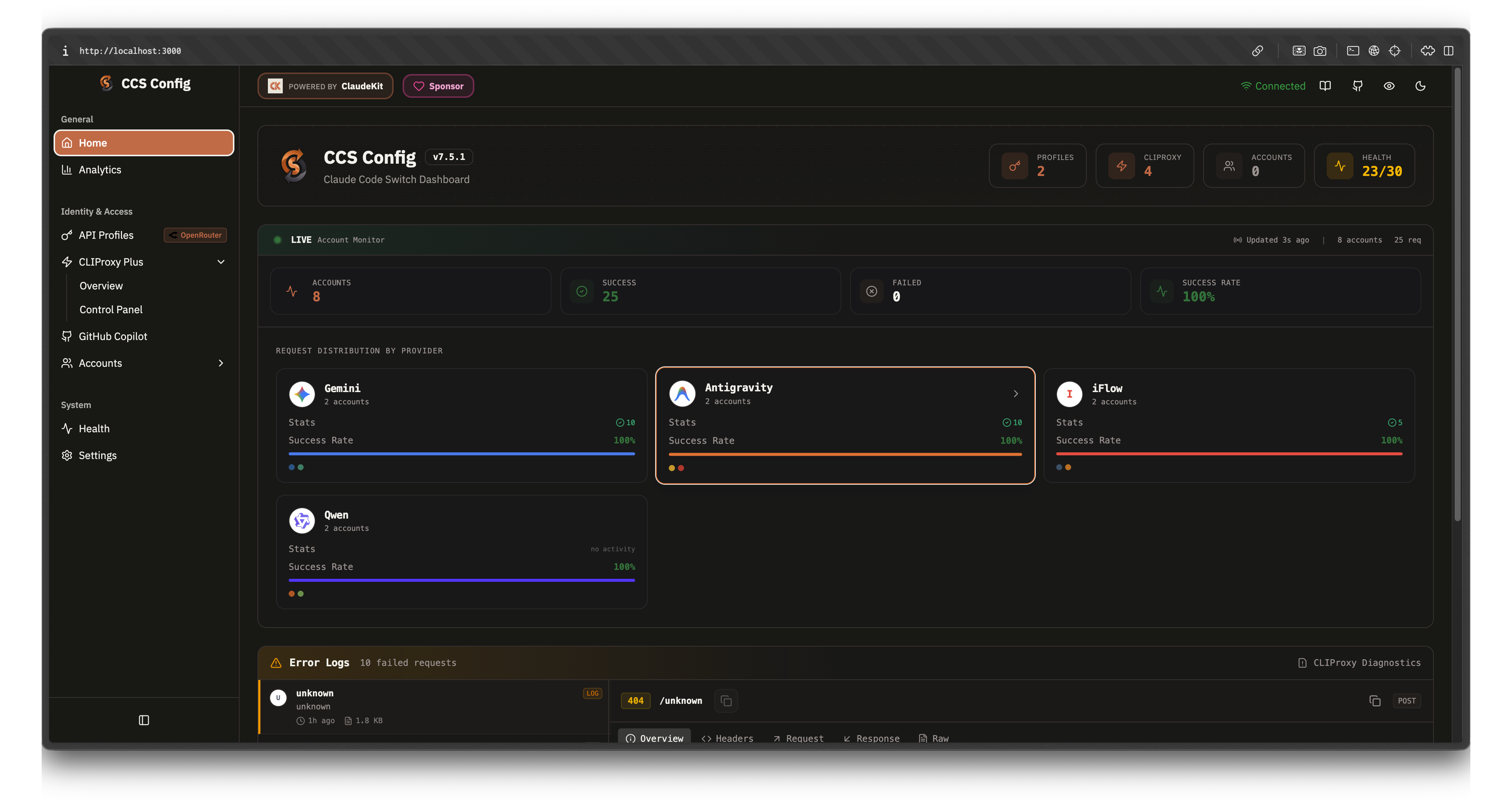 - Không bao giờ hit rate limit: CCS cho phép chuyển đổi mượt giữa nhiều tài khoản AI tự động. Nó tự sử dụng quota ở các tài khoản và có cà dashboard theo dõi rất chi tiết.