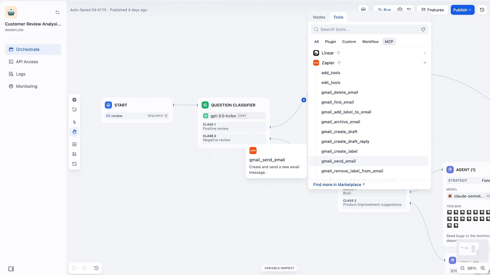 Đây là "vũ khí bí mật". Thay vì logic phức tạp trong n8n, bác đẩy hết xử lý ngôn ngữ sang Dify.