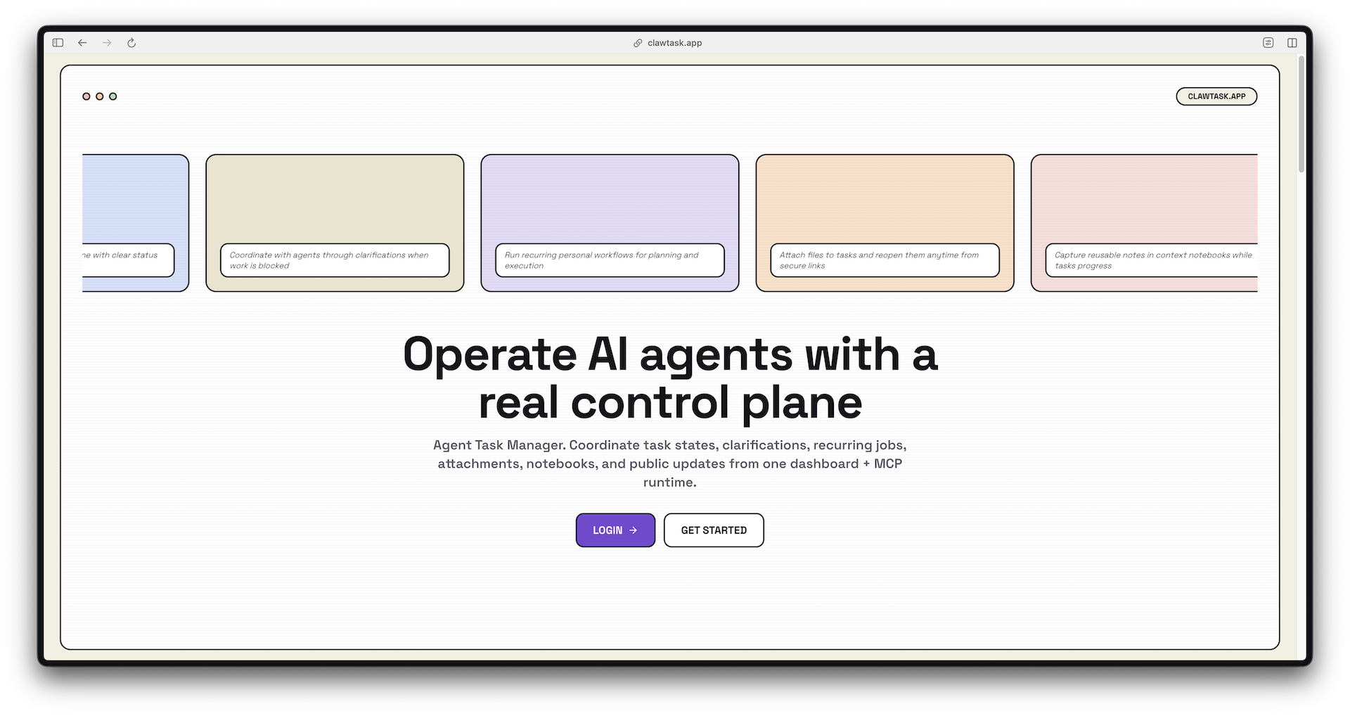 ClawTask không cố gắng trở thành một chat app tốt hơn. Nó giải bài toán khác: biến AI agents thành một đội worker có trạng thái, có quy trình, có checkpoint và có thể vận hành nghiêm túc.