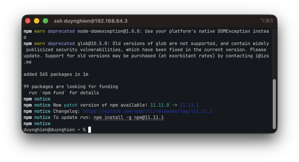 Giờ thì cài OpenClaw thông qua trình quản lý npm: