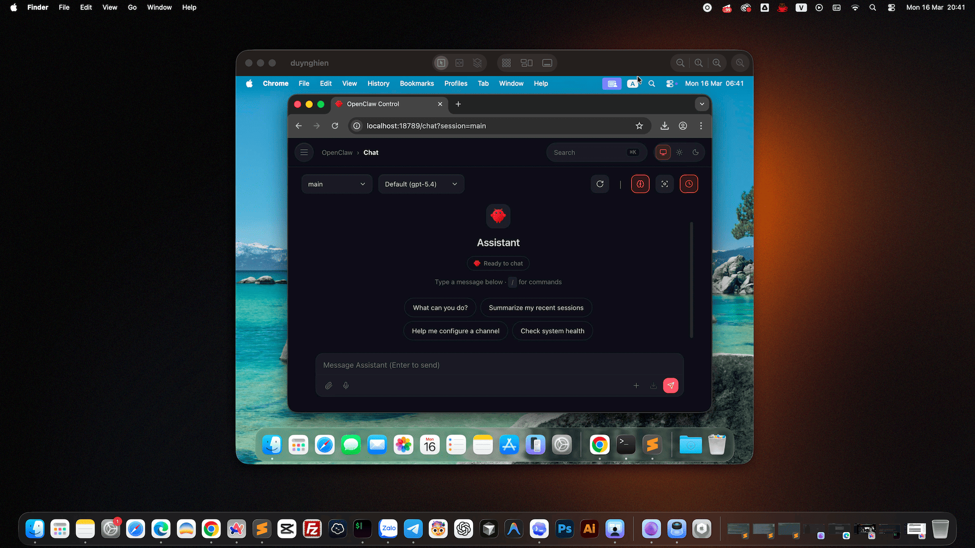 Để AI có thể nhận lệnh và gửi tin nhắn tự động qua WhatsApp hoặc Telegram, anh em chạy tiếp lệnh: