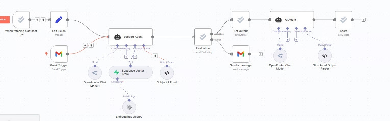 - Nối cả Trigger thật (Webhook/Chat) và Evaluation Trigger vào node này.