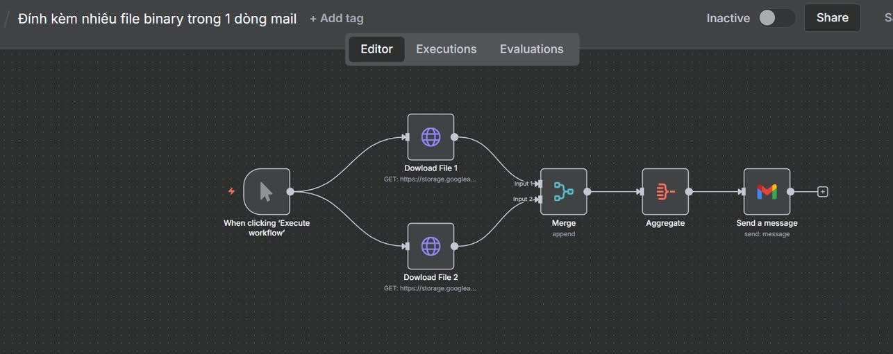 Tự động đính kèm nhiều file trong node gửi email n8n